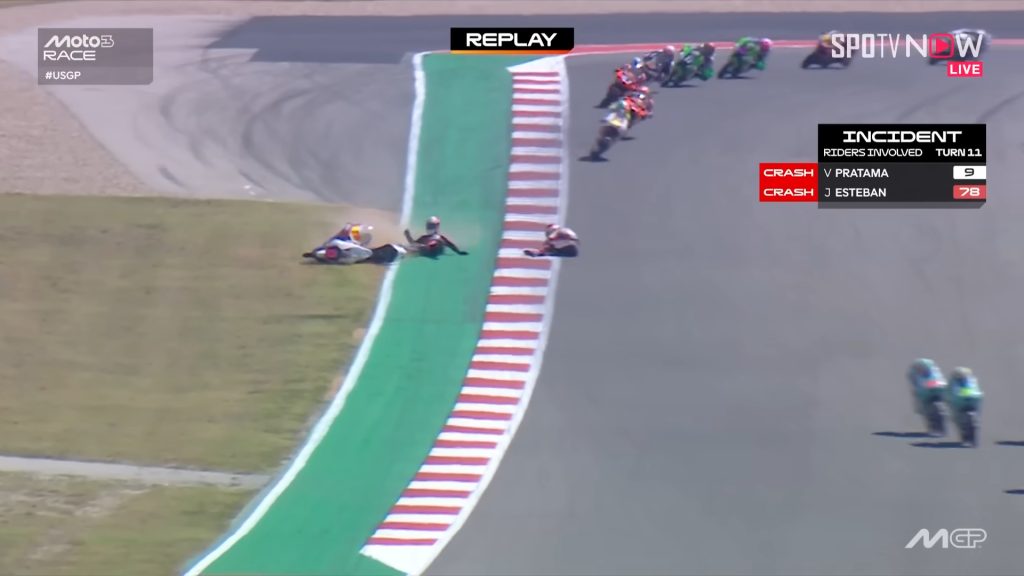 - Veda Ega Pratama Crash! Guido Pini Cukur Alvaro Carpe – Moto3 Race | MotoGP™ Amerika – https://www.youtube.com/watch?v=QE5MhKcmSq0